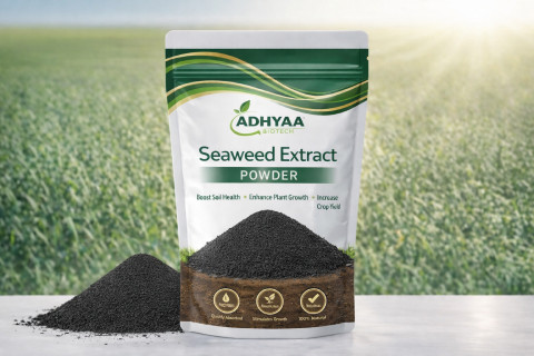 Seaweed Extract Powder from Adhyaa Biotech is a high-quality, water-soluble plant biostimulant derived from carefully selected marine seaweeds and processed using advanced extraction technology. Its fine powder form ensures quick dissolution and rapid absorption, delivering immediate growth stimulation and improved plant performance.